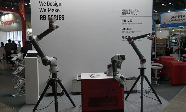 ▲ 레인보우로보틱스는 2020로보월드에서 RB5-850A, RB3-1200, RB10-1300 등 다양한 협동로봇 제품군을 선보였다
