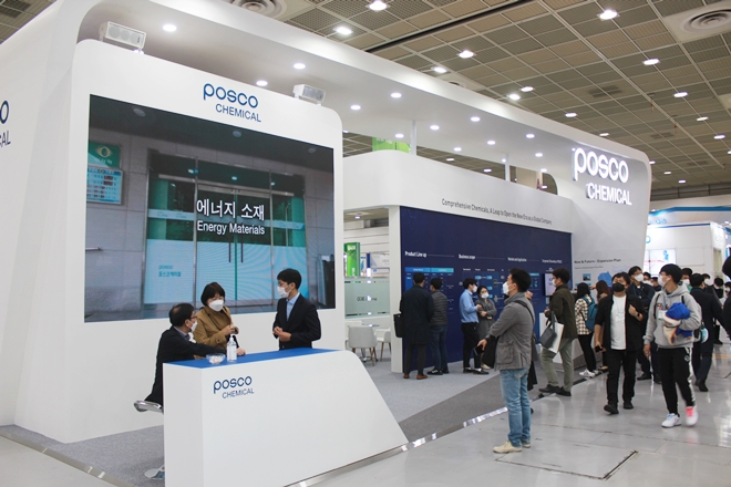 포스코케미칼이 지난 10월 21일(수)부터 서울 코엑스에서 개최된 '인터배터리 2020'에 참가해 음극재와 사원계 양극재를 전시했다.