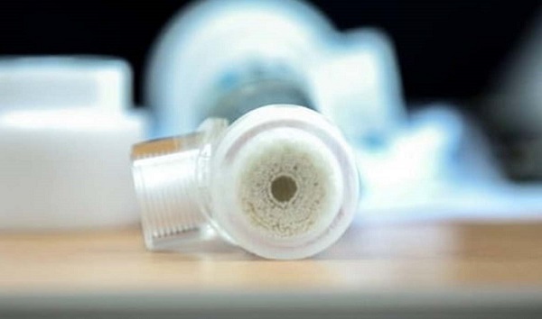 ▲생기원이 개발한 막접촉기 단면으로, 내부에 직경 1mm 이내의 빨대 형태의 필터가 다발로 묶여 있는 것이 특징이다.