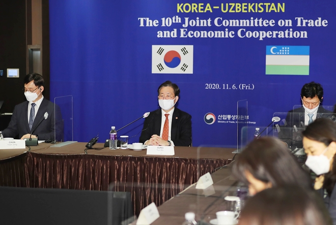 성윤모 산업통상자원부장관은 지난 6일(금) 사도르 우무르자코프 우즈벡 투자·대외협력 부총리와 제10차 한-우즈벡 무역경제공동위원회를 화상으로 개최했다.