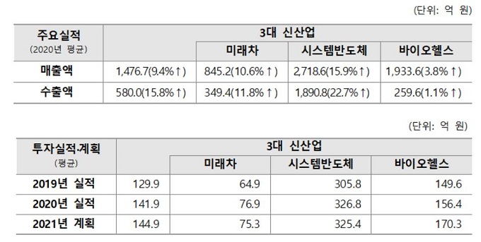 미래차와 시스템반도체는 내년도 투자계획이 올해보다 1억원가량 소폭 줄었지만, 바이오헬스가 투자를 14억원 늘리기로 하면서 투자계획 평균치가 올랐다.