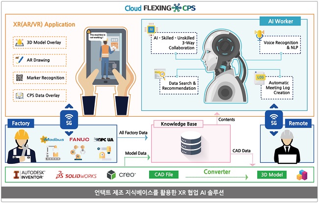 A. CPS를 기반으로 유비씨가 집중하는 분야는 언택트 원격 자율제조 협업 시스템이다. 공장의 인력 및 인건비는 모든 제조기업의 가장 핵심적인 고민이다. 5G 기반의 원격 VR/AR/MR 협업 솔루션을 통해 원격자는 재택에서 공장을 제어할 수 있다. 현장에는 최소한의 인력만 배치되고, 현장 작업자는 AI와 원격자와 협업하여 공장을 운영할 수 있다.