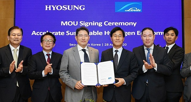 효성은 산업용 가스 전문 세계적 화학기업인 린데그룹과 함께 오는 2022년까지 총 3,000억원을 투자해 액화수소 생산, 운송 및 충전시설 설치와 운영을 망라하는 밸류체인을 구축하기로 했다. 이를 위해 1월 28일 서울 마포 본사에서 조현준 효성 회장과 성백석 린데코리아 회장이 참석한 가운데 MOU를 체결했다.