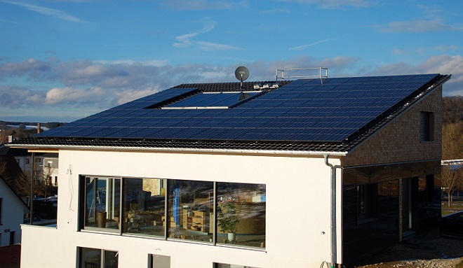 ▲독일 아우크스부르크(Augsburg)시 주택 지붕에 설치된 한화큐셀 태양광 모듈 <출처 : 한화솔루션>