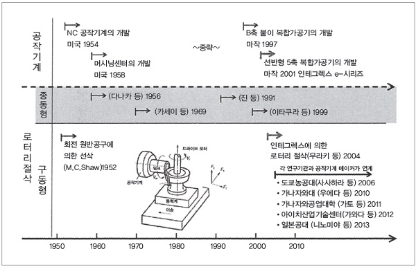 그림 2. 공작기계의 변천과 로터리 절삭의 연구