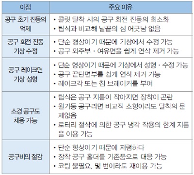 표 1. 로터리 절삭의 공구로서 원기둥 재료를 채용하는 이점