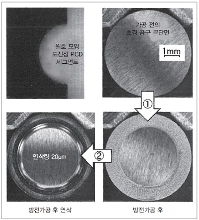 그림 9. 도전성 PCD 조각에 의한 방전·연삭 축차가공
