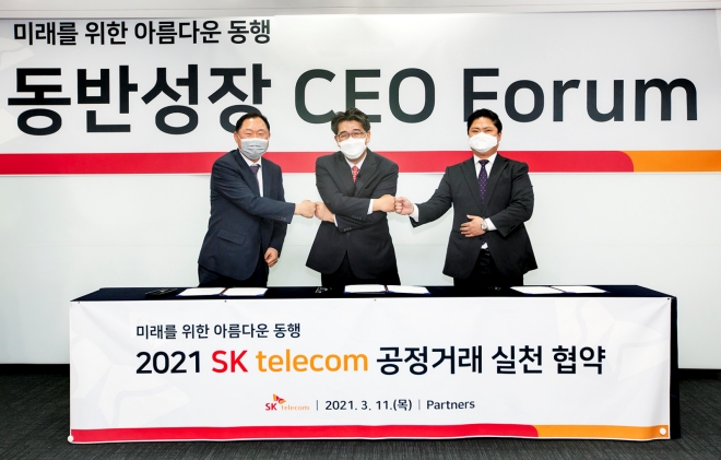 SK텔레콤은 11일 서울 중구 SK 남산빌딩 소재 SK텔레콤 동반성장센터에서 자사 우수 비즈니스 파트너사 대표 및 임직원 약 400명을 대상으로 하는 비대면 동반성장 CEO 포럼을 시행했다.