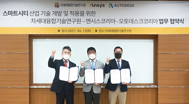 앤시스코리아와 차세대융합기술연구원, 오토데스크코리아가 스마트시티 관련 기술 발전과 플랫폼 구축을 위해 손잡았다.