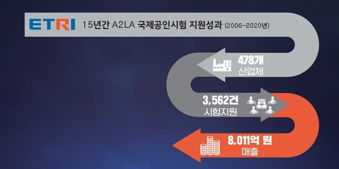 ▲ETRI 15년간 A2LA 국제공인시험 지원성과(출처 : ETRI)