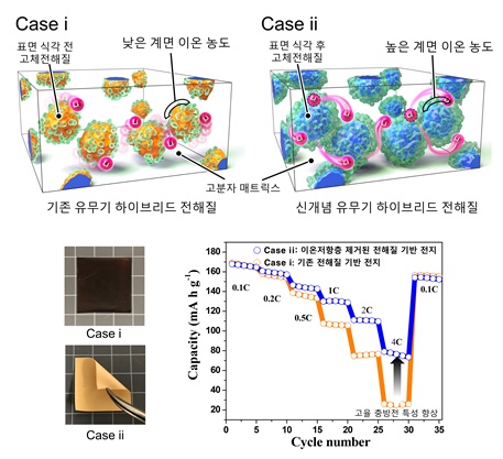 이차전지를 더욱 안전하게 만들 수 있는 새로운 하이브리드 전해질 소재를 개발한 것이다. 특히, 연구진은 새로운 개념을 적용한 전해질 설계에 성공하면서 향후 차세대 이차전지용 전해칠 연구를 더욱 활발하게 만드는 데 도움을 줄 전망이라고 전했다.