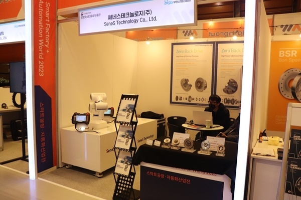 쎄네스테크놀로지가 ‘스마트공장·자동화산업전 2023(Smart Factory+Automation World 2023, 이하 AW 2023)’에 참가해 산업용 로봇 모델과 두 가지 제로백 드라이브 라인업을 전시해 참관객에게 소개했다.