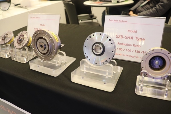 쎄네스테크놀로지는 이번 전시회에서 소형 6축 다관절 산업용 로봇시리즈 중 가장 소형화 모델인 ‘Robo 001’과 제로백 드라이브 ‘SZB-CSA’, ‘SZB-SHA’ 등 Type 시리즈를 전시했다. Robo 시리즈는 가동성과 정밀성에 장점이 있는 다관절 산업용 로봇이다. 쎄네스테크놀로지의 제로백 드라이브는 금속의 굴곡과 탄성 역학을 응용해 설계했고, 하모닉 드라이브와 호환 가능하다.