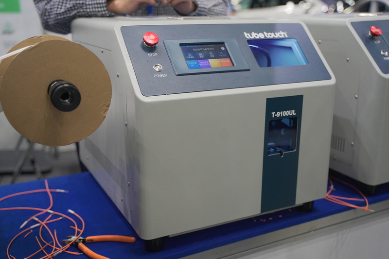 마이클앤선솔루션은 배선·튜브 가공 자동화 장비 브랜드 ‘튜브터치(Tube Touch)’를 전면에 내세웠다. 전시 현장에는 자동 튜브 절단·인쇄·수축 라벨링 장비가 가동됐다. 참관객들은 케이블이 장비에 투입된 뒤 절단·피복 인쇄·수축 라벨이 부착되는 과정을 실시간으로 확인할 수 있었다.