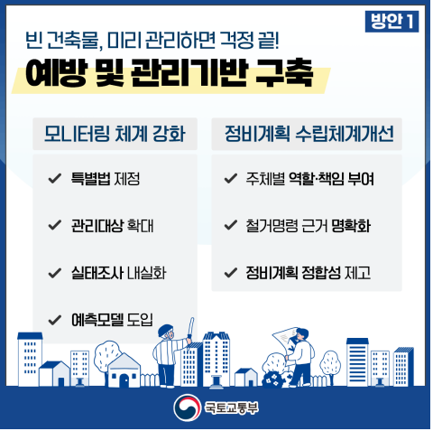 1. 예방 및 관리 기반 구축빈 건축물을 선제적이고 체계적으로 관리하기 위한 제도적 기반을 구축한다.