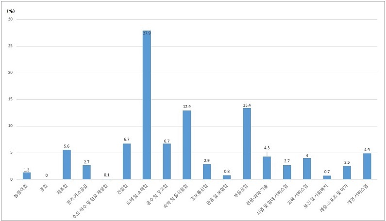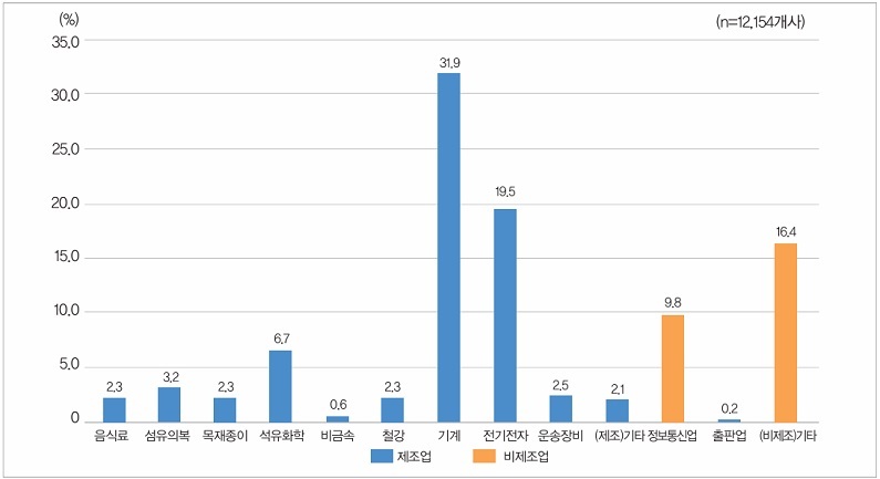 2022년 기준 국내 제조창업 기업은 27만 개로, 전체 창업기업(482.9만 개)의 5.6%를 차지한다. 매출액은 171조 원, 종사자는 90만 명으로, 도매·소매업 다음으로 높은 매출 기여도를 보였다.