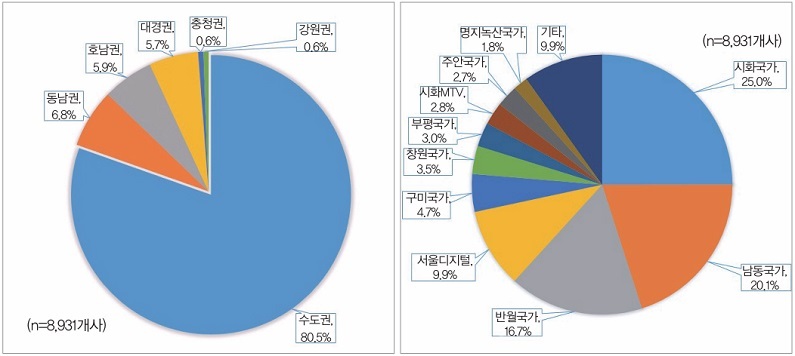 2023년 기준 산업단지 내 제조창업 기업은 8,931개. 그중 7,190개, 즉 80.4%가 수도권에 집중돼 있다. 경기(44.8%)·인천(25.8%)·서울(9.9%)이 대부분을 차지하고, 비수도권은 경북(4.8%)·경남(3.7%)·전북(2.8%) 수준에 머문다.