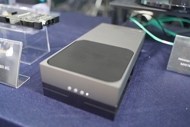 ▲ 엔디비아 에지(Edge)용 AI 컴퓨팅 모듈 ‘엔비디아 젯슨(NVIDIA Jetson)’의 최신·최상위 모델 시리즈 '엔비디아 젯슨 AGX 토르(NVIDIA Jetson AGX Thor)' 두 종. 왼쪽부터 '개발용 키트(Developer Kit)'와 엔비디아의 차세대 AI 칩 아키텍처 '블랙웰(Blackwell)'이 적용된 'T5000'. (출처 : 헬로티 최재규 기자)