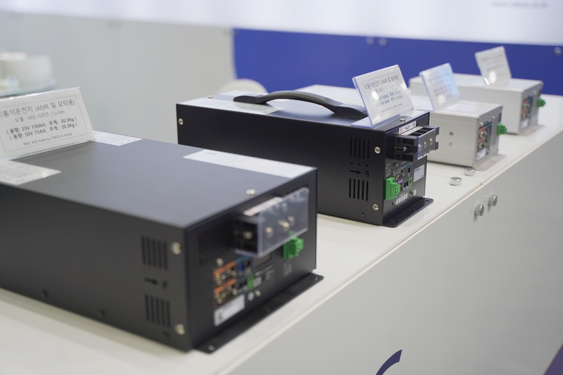 현장에는 11볼트(V)·25V급 저부하용 팩, 다양한 범위의 V 및 암페어시(Ah)급 모터 구동용 팩 등 다양한 제품이 참관객을 맞이했다. 사측은 “AMR·AGV, 물류 장비, 특수차량까지 사용자 필요에 따라 팩 설계, 배터리관리시스템(BMS), 충전기 등을 함께 공급하고 있다”고 설명했다.
