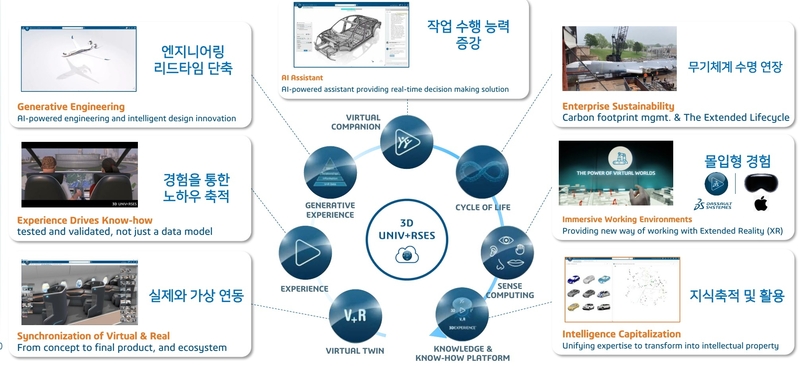 다쏘시스템은 MBSE와 같은 새로운 패러다임뿐만 아니라, 각종 최신 기술을 내재화하는 로드맵도 구축했다. 이러한 차세대 비전이 바로 ‘3D유니버스(3D UNIV+RSES)’다. 다쏘시스템 버추얼 트윈 플랫폼 ‘3D익스피리언스(3DEXPERIENCE)’는 이 기반 안에서 가동한다.