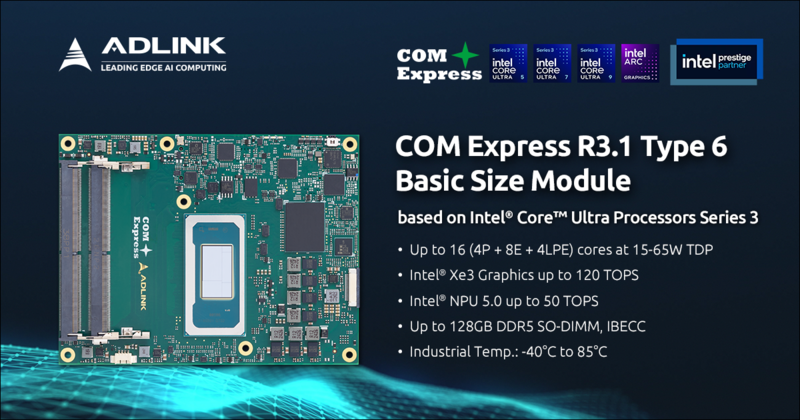 엣지 AI 컴퓨팅 솔루션 분야의 글로벌 기업 에이디링크 테크놀로지가 Intel Core Ultra 시리즈 3 프로세서를 탑재한 COM Express 모듈을 처음으로 선보이며 고성능 엣지 AI 시장 공략에 나섰다. 에이디링크는 새로운 Express-PTL COM Express 모듈을 통해 복잡한 산업용 AI 워크로드를 위한 고집적·고성능 컴퓨팅 솔루션을 제시했다.
