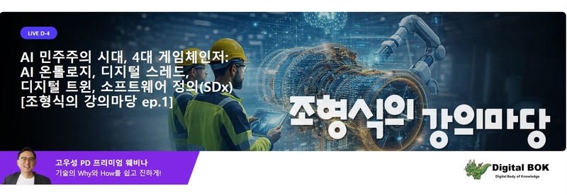 이어 디지털 스레드와 디지털 트윈을 통해 제품 수명주기 전반의 데이터 흐름을 연결하고 가상 시운전과 What-if 분석을 현장 운영까지 확장하는 접근법을 다룬다. 마지막으로 SDx 기반의 유연한 실행 체계를 중심으로, 보안·윤리·데이터 주권을 포함한 AI 민주주의 시대의 거버넌스 방향을 제시할 예정이다.
