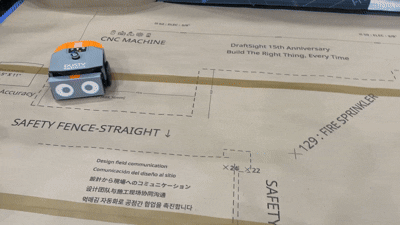 특히 해당 로봇이 수동 조종 방식이 아닌 완전 자율 주행을 기반으로 작동함을 강조하며 “현장에서 작업자가 직접 운전하거나 개입하는 방식이 아니라는 점이 핵심”이라고 덧붙였다. 바닥에 출력되는 데이터는 텍스트와 상세 수치까지 포함하며, 이는 현장 내 소통의 기준을 설계 원본 데이터로 일원화한다는 개념이다.