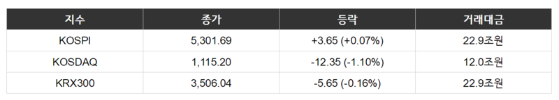 KOSPI는 전일 해외증시 강세 속에 투자 심리가 회복되며 2일 연속 상승 마감했다. 장중 강보합세가 시현되는 가운데 금융 업종 중심으로 기관 매수세가 확대됐다. 업종별로는 종이·목재(+8.3%), 섬유·의류(+3.3%), 운송·창고(+3.1%), 유통(+2.4%) 등이 강세를 보였다. 투자자별로는 외국인(+1,422억원)과 기관(+5,642억원)이 순매수한 반면 개인(-8,728억원)은 순매도했다.
