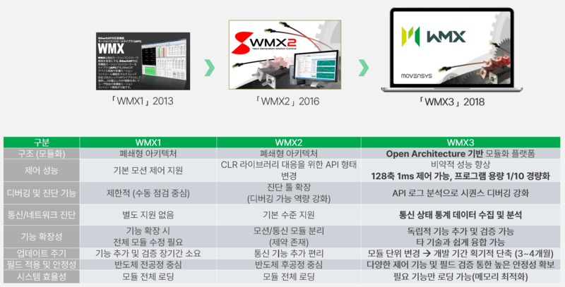 모벤시스의 WMX는 산업용 PC(IPC)를 활용해 별도의 하드웨어 없이도 로봇·기계·설비의 축을 실시간으로 움직이는 모션 제어 소프트웨어다.