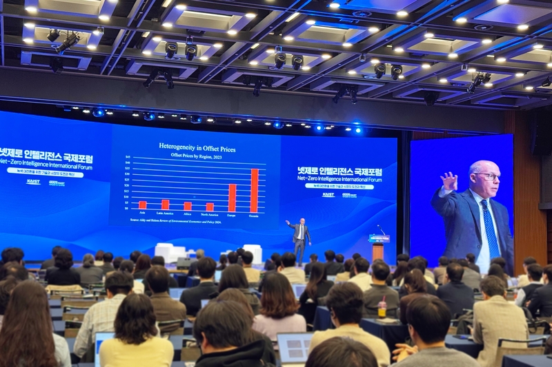 한국과학기술원(KAIST)과 KAIST 녹색성장지속가능대학원은 27일 서울 중구 대한상공회의소에서 ‘녹색 대전환을 위한 기술과 시장의 도전과 혁신’을 주제로 ‘넷제로 인텔리전스 국제포럼’을 개최했다.