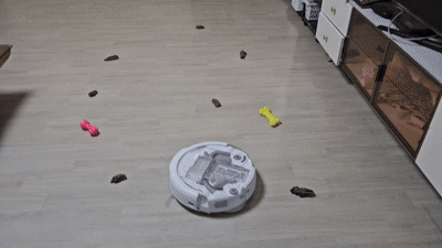 ▲ 세 가지 미션을 한데 수행하는 로모 P. 영상 속 각종 배설물은 실제가 아니라 기자가 제작한 모형이다. (촬영·편집 : 헬로티 최재규 기자)