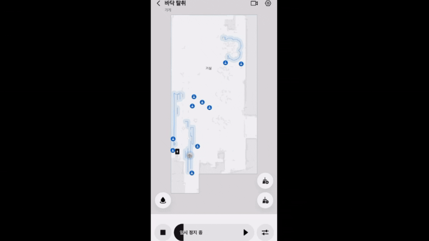 ▲ 로모가 바닥 오염물을 12N 하중을 가해 물걸레로 지우고, 지도화를 통해 확보한 동선을 청소하고 있다. (촬영·편집 : 헬로티 최재규 기자)