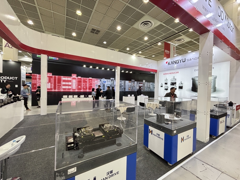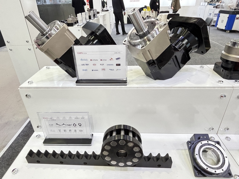 또한 원형 구조의 CAM RING 제품도 함께 전시됐다. 해당 장치는 회전 기반 구동 메커니즘에 적용되는 구조로 기계식 자동화 장비에서 반복적인 동작을 구현하는 방식으로 활용된다. 부스에는 RV 감속기 형태의 구동 부품도 함께 배치됐다. 산업용 로봇이나 자동화 설비에서 토크 전달과 회전 제어에 사용되는 기계 구동 장치로 자동화 설비의 핵심 구동 요소 가운데 하나다.