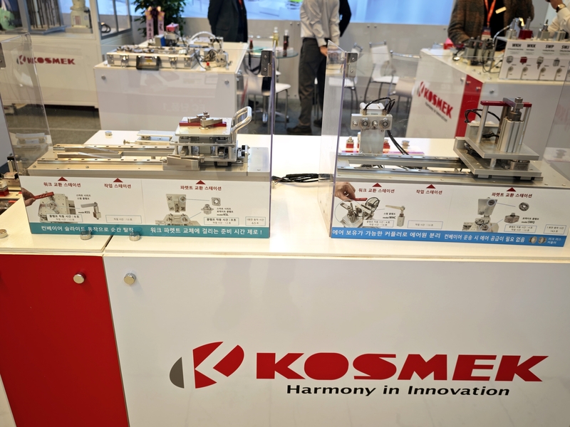 이번 전시회에서 코스멕은 로봇 핸드 체인저를 중심으로 한 툴 교환 솔루션 라인업을 공개했다. 고정밀 로봇 핸드 체인저는 로봇의 다기능화와 범용화를 실현하며, 툴 교환 시간을 단축해 생산성 향상으로 이어진다.