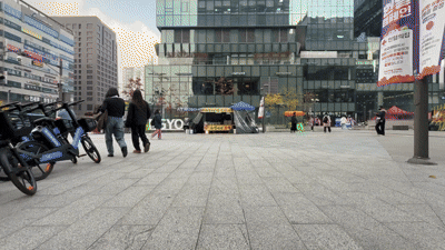 뉴비는 횡단보도 앞에서는 신호에 맞춰 멈췄고, 보행자가 몰린 구간에서는 속도를 낮췄다. 목적지에 도착한 뒤에는 수령 절차를 마치고 다시 출발 지점이나 충전 거점으로 복귀했다. 여기서 로봇이 판교의 일상적인 보행 동선 안으로 들어와 자기 일을 반복하고 있다는 사실이 주목 포인트였다.