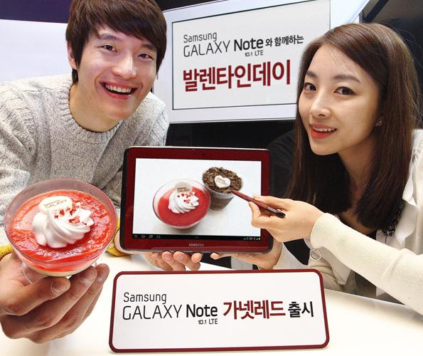 삼성전자가 14일 발렌타인·화이트 데이와 입학·졸업 시즌 등을 맞아 여성 소비자를 겨냥한 '갤럭시 노트 10.1 LTE' 가넷 레드 모델을 통신 3사를 통해 국내 시장에 출시한다.