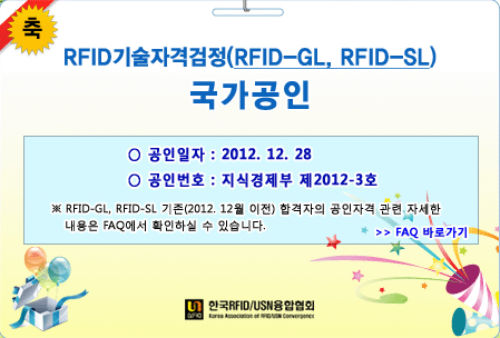 RFID기술자격검정이 지식경제부로부터 국가공인을 받아 2013년부터 국가공인 자격으로 시행된다. 이번 국가공인 받은 자격검증은 RFID-GL, RFID-SL로 2개 등급이다.