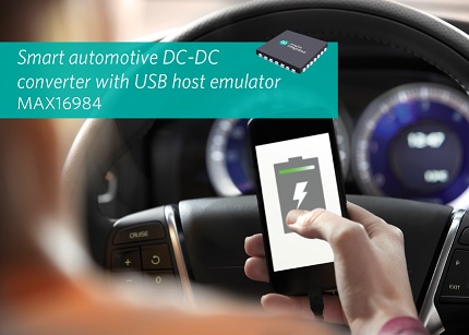 Maxim Integrated Products, Inc.에서 나온 단일 IC인 USB 충전 에뮬레이터를 내장한 MAX16984 자동차 DC-DC 컨버터를 사용하면 차량용 배터리 전원을 사용하여 USB를 통해 모든 휴대기기(PD)를 인식하고 충전할 수 있다.