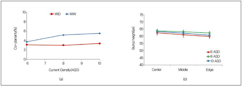 특히, 다양한 전류 밀도 범위에서 300㎜ 웨이퍼 전반에 걸쳐 일정한 Bump 높이를 형성하도록 WID와 WIW의 균일도를 각각 5%와 10% 미만으로 유지한다(그림 1).