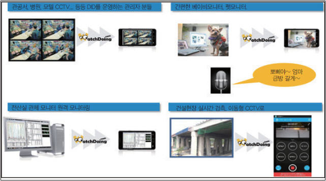 와치두잉 서비스는 스마트폰을 CCTV로, 웹캠을 CCTV로, PC 원격 모니터링에서 가전 기기 제어까지 가장 쉬운 방법을 제시하는 것을 테마로 운영된다(그림 5).