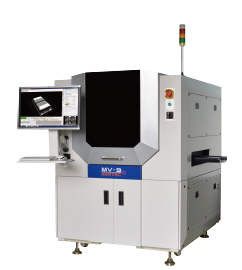 미르기술의 3D/2D 인라인 AOI 검사기 MV-9 시리즈는 세계 최초로 15/25 Mega Pixel CoaXPress 카메라를 적용해 보다 더 빠르고 정확하게 PCB 내의 불량을 검사할 수 있다. 또한 4개의 측면 카메라, 6단 컬러 조명, Telecentric Lens를 이용해 3D와 2D 검사를 동시에 진행하며, 부품의 높이, 틀어짐 및 들뜸 등을 검사할 수 있다. 0402 Chip/03015 Chip 등 초소형 부품의 검사 정밀도를 확보하여 자동차 전장, 반도체 등에 적용이 가능하다.