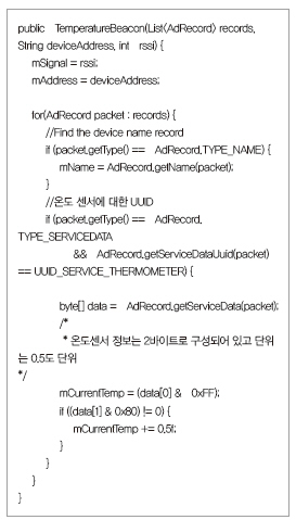 - 센서태그에서 온도센서로부터 전달받은 데이터를 처리하는 소스