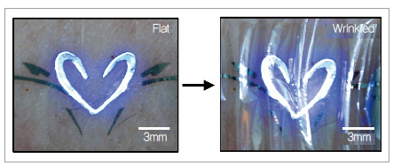 두께가 머리카락의 약 40분의 1(2.6마이크로미터)에 불과한 초박막 필름 소자로, 마음대로 구부리고 늘릴 수 있을 뿐 아니라 저전압에서도 작동하기 때문에 사람의 피부에 부착한 상태에서 사용이 가능하다.