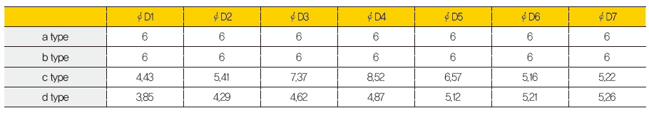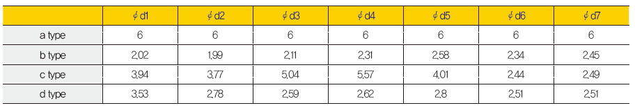 표 3. 2차 러너의 직경