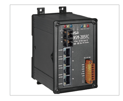 대만 ICP DAS사의 NS-205F/NSM-205F는 1개의 파이버(Fiber) 포트와 4개의 언매니지드(Unmanaged) 이더넷 포트를 탑재한 스위치이다.