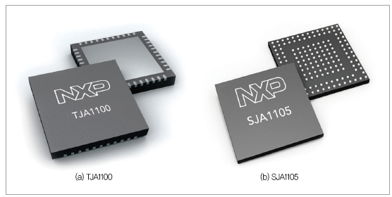 ▲ NXP의 트랜시버 TJA1100와 스위치 SJA1105