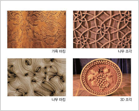 3D 레이저는 2D 레이저에서 구현할 수 없었던 입체적인 조각 작업을 할 수 있어, 입체 금형 조각 및 포커스 높이가 다른 불규칙한 부품의 표면에 다이나믹 포커스를 적용해 포커스 조정 없이 불규칙한 굴곡면에 마킹할 수 있다.