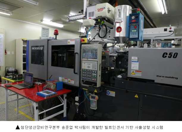 한국기계연구원 첨단생산장비연구본부 송준엽 연구팀은 금형 내부에 내장센서를 달아 온도, 압력 등 데이터를 직접 측정하고 분석하는 '똑똑한 사출성형 시스템'을 개발했다.