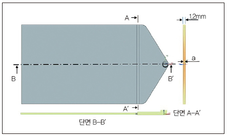 그림 2. 엣지 게이트 단면의 두께가 다른 형상