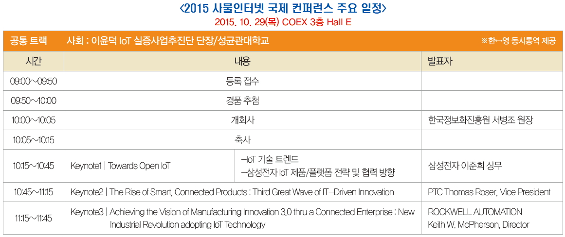 사물인터넷이 우리나라뿐 아니라 세계 각국과 글로벌 기업의 새로운 성장 산업으로 자리매김하면서, 기업 간 협력과 경쟁이 치열해지고 있는 시점에서, 다양한 사물인터넷 서비스·제품·기술·기업 현황을 종합적으로 파악할 수 있는 자리가 될 것이다.